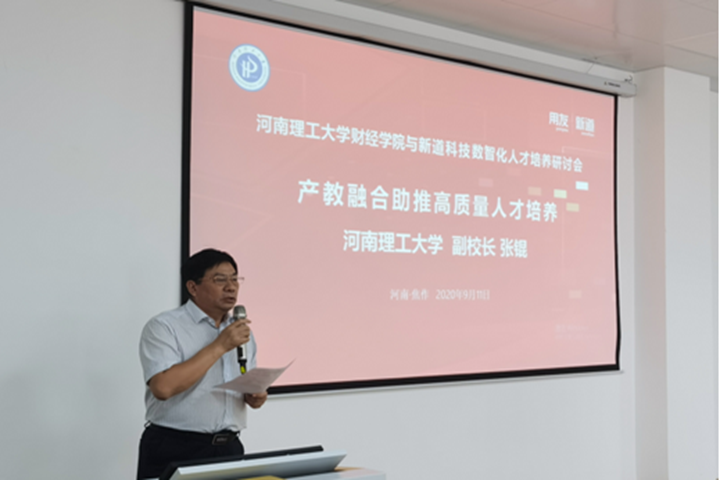 本网讯(通讯员 王玉法)9月11日上午,财经学院与新道科技股份有限公司数智化人才培养研讨会在财经虚拟仿真实验室1308召开, 会议旨在更好地促进产业学院落地,以学生发展为中心,突破传统路径依赖,充分发挥产业优势,发挥企业育人资源,深化产教融合,加强数智化人才培养,做强一流本科、建设一流专业、培养一流人才。副校长张锟、新道科技助理总裁刘锦、中原区总经理张林峰出席会议,教务处、招生就业处相关负责人,财经学院各专业负责人及专任教师等参加会议。会议由财经学院院长梁丽娟主持。