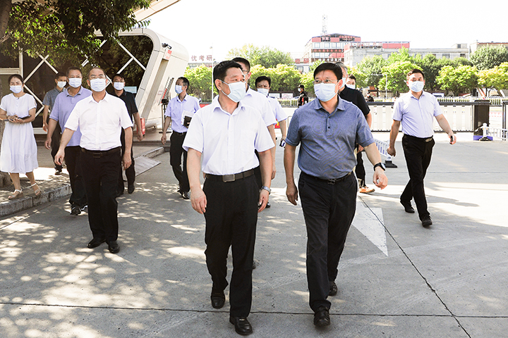 本网讯(记者 芦晓伟/文 李为群/图)9月3日上午,河南省教育厅基础教育处调研员陈锋一行3人莅校,督查指导我校2020年秋季学期开学和新学期疫情防控措施落实情况,校长杨小林、校工会主席翟耀南陪同。