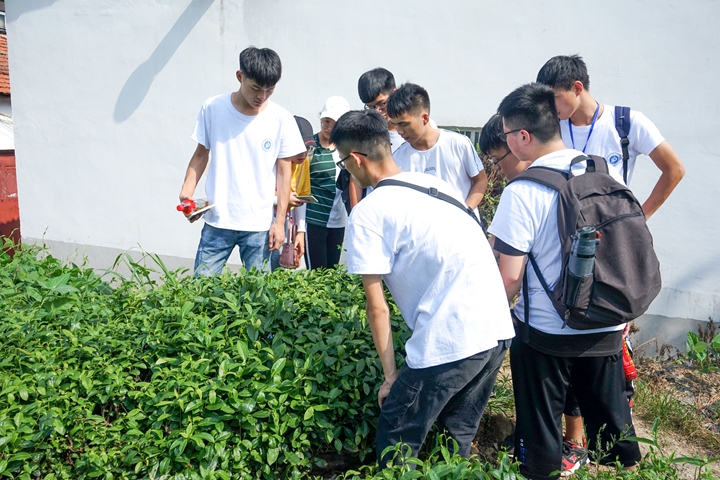 在相关负责人的介绍下,实践队员对毛尖的生长环境、生长周期有了初步的认识。随后,实践团队参观了制茶机器并了解到采摘、分拣以及包装等一系列制茶工艺。实践团队与当地茶农会合,深入茶叶黑龙潭茶园生产基地开展进一步调研。针对采茶制茶、卖茶及品茶等方面问题茶农都一一做了详细的解答。调研结束后,队员对今天的实践内容及成果展开讨论并进行总结。