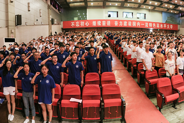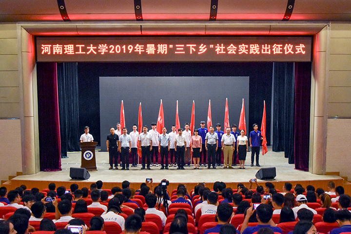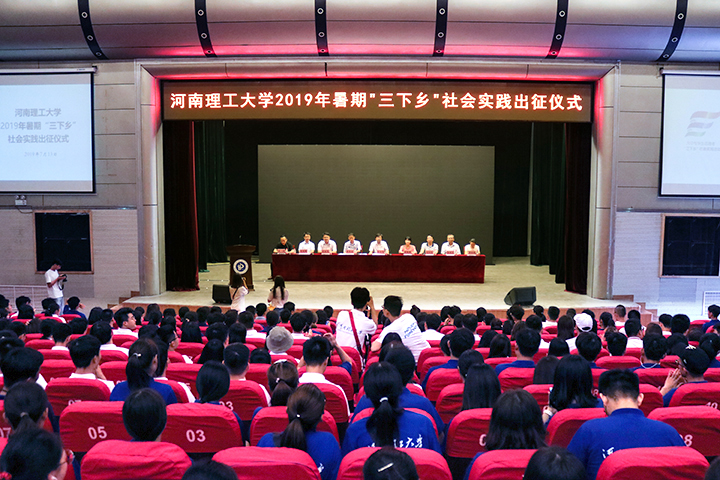 7月13日上午,我校2019年暑期“三下乡”社会实践出征仪式在小礼堂举行。校党委副书记安士伟出席仪式,党委宣传部、学工部、教务处、科技处、研工部、校团委等社会实践工作领导小组单位负责人和各学院团委书记、实践团队指导教师及实践团成员代表近600余人参加了出征仪式。
