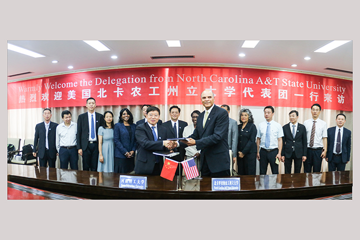 6月25日至28日,美国北卡罗来那农工州立大学校长哈罗德·马丁博士,教务长贝利尔·麦克文博士,副校长麦乐迪·皮尔斯,副教务长妮可·普赖德、商学院院长凯文·詹姆斯、商学院教授王红、电气学院教授谢志坚等一行7人莅临我校访问交流,续签中外合作办学项目协议,并出席2019届毕业生毕业典礼暨学位授予仪式。