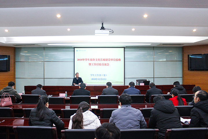 为进一步加强学生宿舍文化建设,营造浓厚的校园文化氛围,12月12日下午,学校在明德楼一楼会议室举行了第二批学生宿舍文化长廊建设试点验收暨建设工作经验交流会。学生处、宣传部、校团委、后勤处(集团)等部门负责人、部分学院党委副书记、学工办主任及相关老师、部分学生代表作参加了会议,会议由学生工作部(处)副部(处)长常玉光主持。