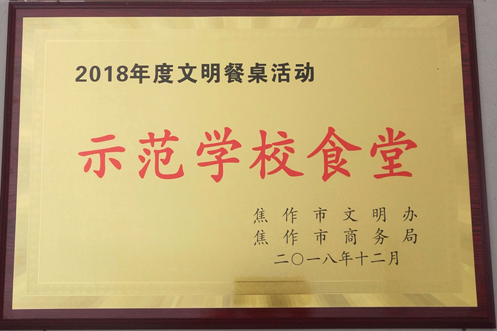近日,由焦作市文明办和商务局共同举办的2018年度文明餐桌评比活动中,我校学生食堂获得“示范学校食堂”荣誉称号。