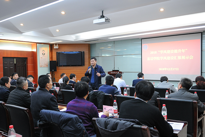 12月17日下午,我校在明德楼一楼会议室召开2018“学风建设提升年”基层学院学风建设汇报展示会。校党委副书记安士伟、副校长赵俊伟出席并担任评委。