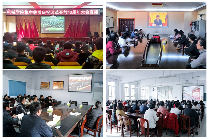 12月18日,学校党委组织校处级领导干部、广大师生员工,通过电视、网络等观看了中共中央、国务院召开的庆祝改革开放40周年大会,聆听了中共中央总书记、国家主席、中央军委主席习近平在大会上发表的重要讲话。会后,大家纷纷表示,习近平总书记的讲话振奋人心,让人倍感鼓舞。建成社会主义现代化强国,实现中华民族伟大复兴,是一场接力跑,我们一定要为下一代人跑出一个好成绩。作为百年学府,学校应为实现中华民族伟大复兴提供更加强大的磅礴力量,正如学校校歌中所唱的“努力,努力!行健天同功!”