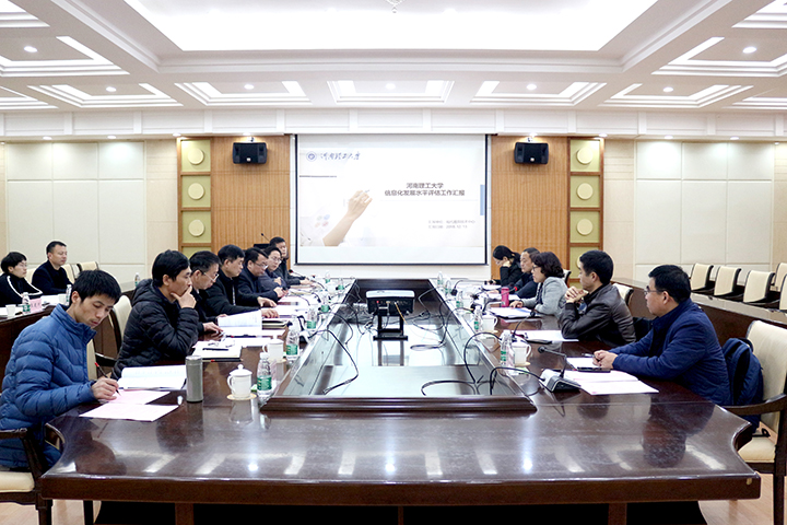12月13日下午,由郑州轻工业学院信息化管理中心主任李霞任组长的省高校信息化发展水平评估专家组一行5人莅校对我校信息化建设工作进行评估。学校在力行楼一楼会议室举行汇报会,副校长赵俊伟出席会议,现代教育技术中心、教务处、宣传部、学生处、人事处、财务处、国资处、科技处、图书馆、后勤集团公司等单位相关负责同志参加汇报会。会议由教务处处长沈记全主持。