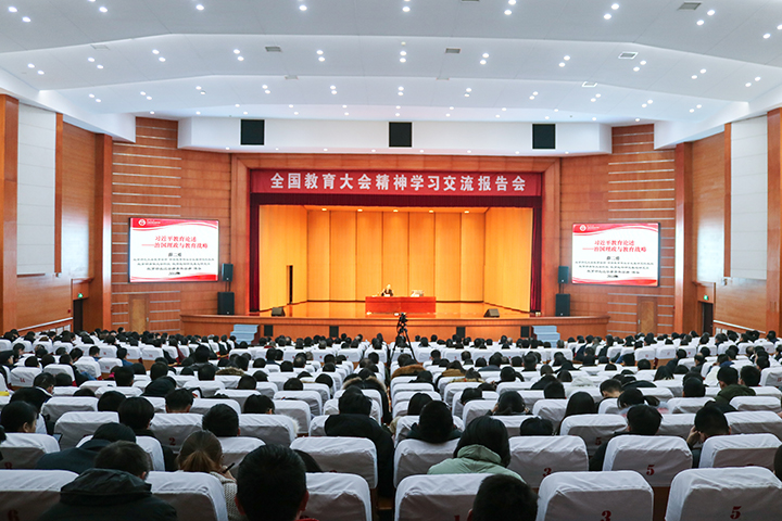 为深入贯彻落实全国教育大会精神,推进落实立德树人根本任务,12月11日下午,我校在南校区明德楼音乐厅举行全国教育大会精神学习交流报告会。省委第七巡视组、学校领导、处科级干部以及教师和学生代表近700人聆听报告。交流报告会由教务处处长沈记全主持。