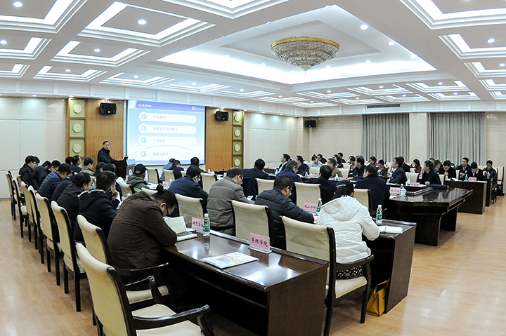 继续教育学院院长王宝山作学校成人高等教育评估工作汇报,介绍了学校成人高等教育办学历史、发展现状等情况,并围绕我校成人高等教育指导思想与办学定位、队伍建设、教学设施与支撑环境、教学资源建设及应用、教育教学管理、学习支持服务系统建设、教育教学效果、办学特色与创新和所面临的问题与思考等方面作了详细的汇报。