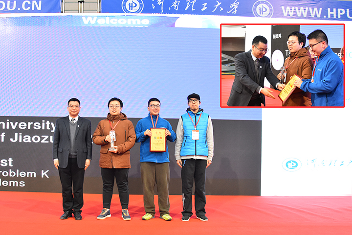 25日上午,比赛正式开始,经过5个小时的激烈角逐,大赛落下帷幕。本次大赛29支队伍获得金奖、58支队伍获得银奖、87支队伍获得铜奖、11支队伍获得最快解题奖、1支队伍获得最佳女队奖、1支队伍获得顽强拼搏奖。清华大学的“随串鸡”代表队获得第一名,清华大学、中山大学和西安交通大学分别赢得冠军、亚军和季军。副校长赵同谦为获得冠军、亚军和季军的队伍颁奖。