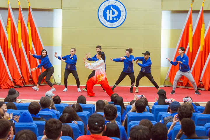 相聚太极故里、云台脚下,相聚在河南理工大学。10月30日晚,北京语言大学汉语学院留学生代表团一行100余师生与我校部分师生在力行楼学术报告厅进行了文化交流活动。校团委、大学生艺术团等40余名学生代表参与交流。