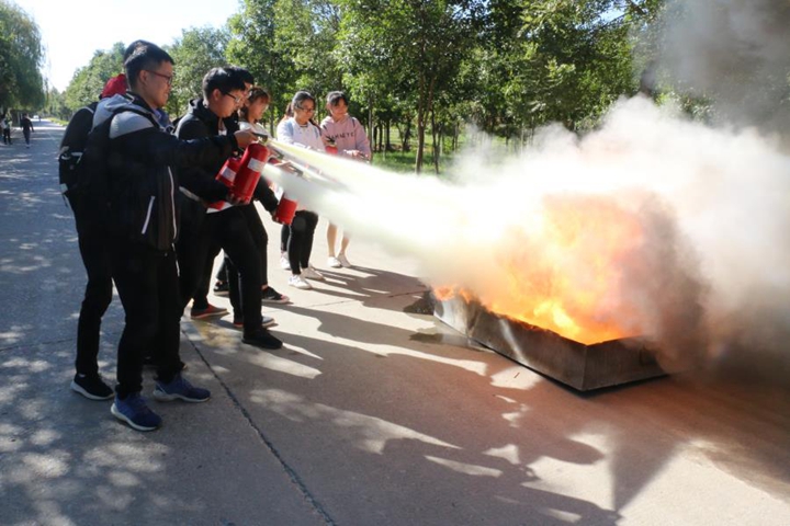 在安全教育课后,进行现场“消防灭火演练”活动,让同学们亲身感受使用灭火器扑救初期火灾的过程,同学们积极尝试,受益匪浅。