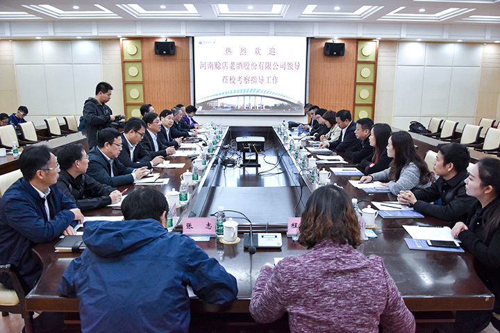李刚详细介绍了赊店老酒有限公司的企业历史、生产工艺、企业发展规划和近年来在事业发展上取得的成绩。李刚强调,企校双方有广阔的合作空间,希望能够充分利用河南理工百年学府的师资优势、专业优势、教学优势,弥补企业发展的短板,依托学校的师资力量在市场营销等方面为公司提供支持,公司也愿意为理工学子提供实习实践机会和就业岗位,促进双方优势互补、互惠互利。