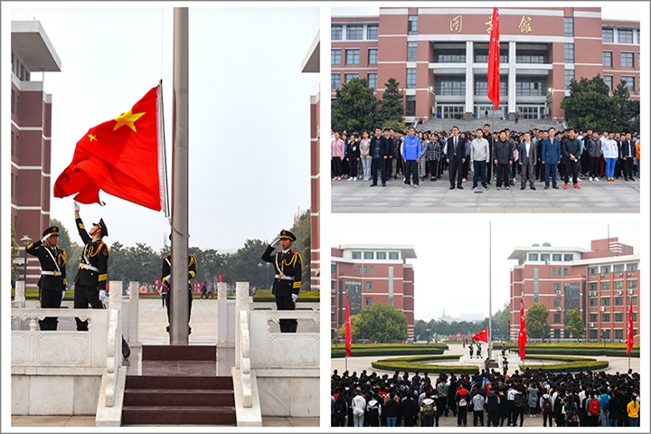 10月17日,我校在南校区中心广场举行了“适逢重阳节,浓浓敬老情”主题升国旗仪式。学生处、体育学院、计算机学院、工商学院、材料学院相关负责人和2000余名师生参加了升旗仪式,仪式由体育学院副院长刘红波主持。