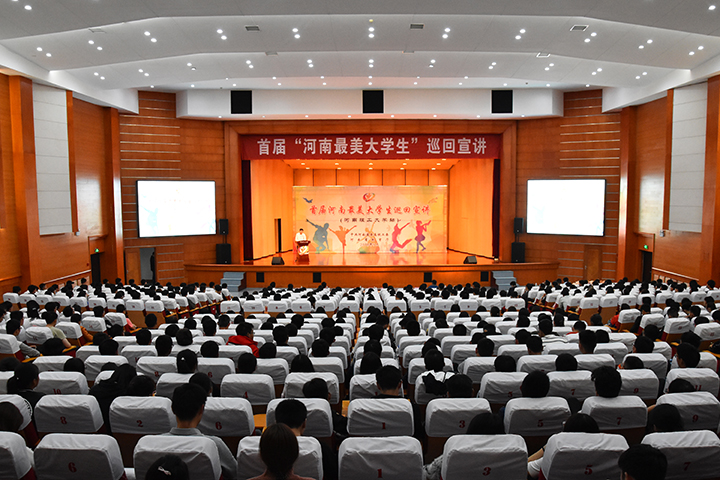 9月27日,由河南省委宣传部、省委高校工委、省教育厅等七部门共同主办的首届“河南最美大学生”巡回宣讲在我校音乐厅举行。我校党委副书记安士伟、焦作师范高等专科学校副校长靳贤胜出席宣讲会。我校和焦作师范高等专科学校、焦作大学、河南工业和信息化职业学院四个学校的师生代表共700余人聆听了此次巡回宣讲。宣讲会由省教育厅新闻办主任杜帅鹏主持。