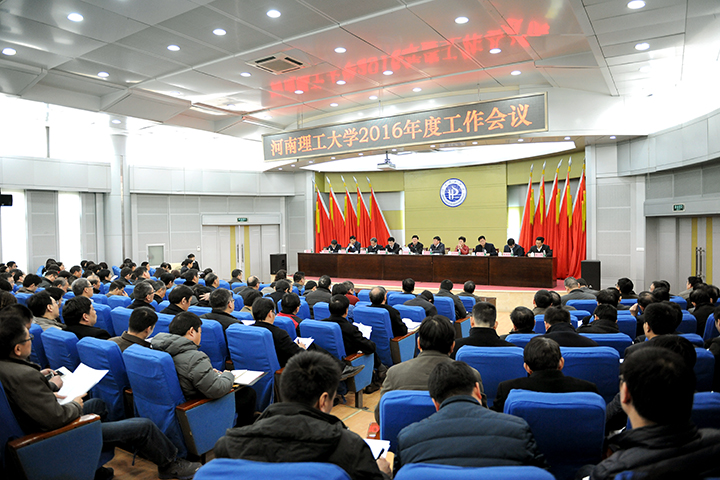 2月28日上午,学校2016年度工作会议在力行楼学术报告厅召开。校党政领导邹友峰、杨小林、周志远、卫中玲、周英、张锟、赵俊伟、翟传森、张尚字、解伟,校长助理孟钟剑出席会议,全体副处级以上干部、省部级(含教育厅)以上平台负责人及各学院党政办公室主任等近300人参加会议。会议由校党委副书记周志远主持。
