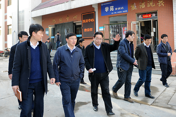 2月26日下午,校长杨小林在副校长翟传森、校长助理孟钟剑陪同下,来到教学楼、学生餐厅、学生公寓、洗浴中心等场所,对开学前各项后勤保障工作进行实地检查。