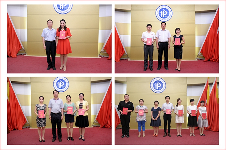 经过激烈的角逐,万方学院孔珊珊获一等奖,校团委孙小婷、机械学院吕宝占获二等奖,计算机学院闪烁、图书馆陈蕾、理化学院李慧军获三等奖,外国语学院杜钦、数信学院王丽、建艺学院陈静、建艺学院金欢、机械学院路好、经管学院杨云松六名老师获优秀奖。朱雪里、郭健卿、沈记全、侯菊英分为荣获一等奖、二等奖、三等奖、优秀奖的选手颁发证书并合影留念。