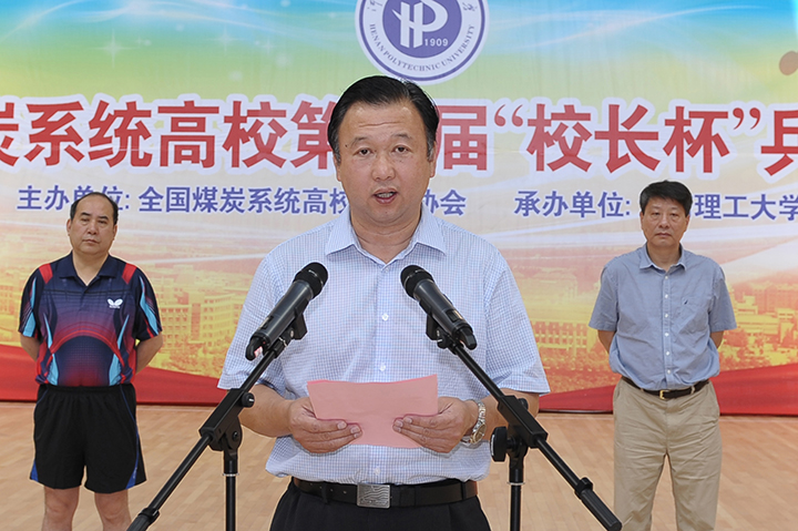 王朝军在致辞中对各参赛院校表示欢迎,向承办本次比赛并为之付出辛勤劳动的河南理工大学领导、老师和同学们致以诚挚的感谢。他指出,本届“校长杯”乒乓球比赛得到了各兄弟院校的大力支持,各位校领导的身体力行更是煤炭系统高校开展体育运动的典范。王朝军希望各参赛院校以此为契机,进一步增进彼此之间的交流和友谊,赛出风格,赛出水平。