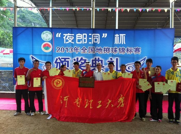 2013年全国地掷球锦标赛于5月26日在贵州夜郎洞国家地掷球训练基地圆满结束。我校地掷球队历经12天的努力拼搏,荣获一枚金牌、一枚银牌、一枚铜牌、五个第四名、六个第五名以及两个第六名的好成绩。与此同时,队员们的良好表现还为我校赢得了体育道德风尚奖的荣誉。