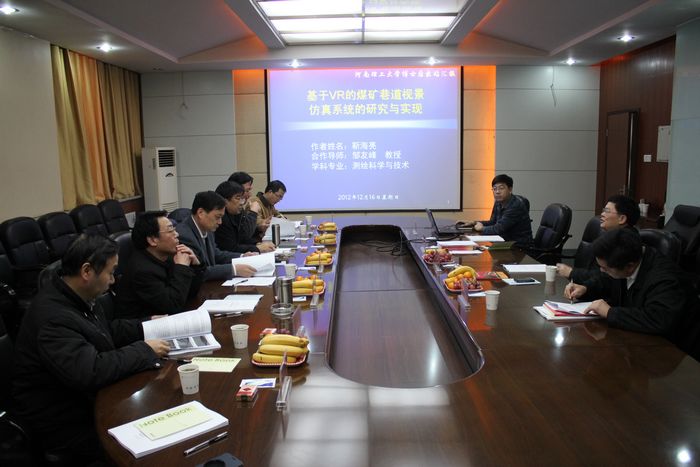 答辩会上,靳海亮博士就“基于VR的煤矿巷道视景仿真系统的研究与实现”研究进行了汇报。答辩委员会就研究进展、煤矿巷道建模技术、虚拟仿真等相关问题进行了提问和质疑,并进行了认真评议,一致认为靳海亮在站期间工作努力,成果显著,研究选题实用性较强,有很强创新性,成果对煤矿安全高效开采、信息化矿山建设、数字矿山建设具有重要理论意义和实用价值,达到了预期研究目标和任务,全票通过答辩,同意其按期出站。