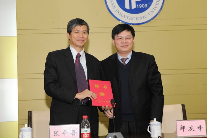 校长邹友峰向张平吾博士颁发学校荣誉教授聘书