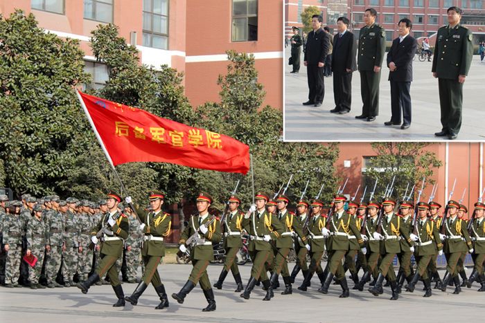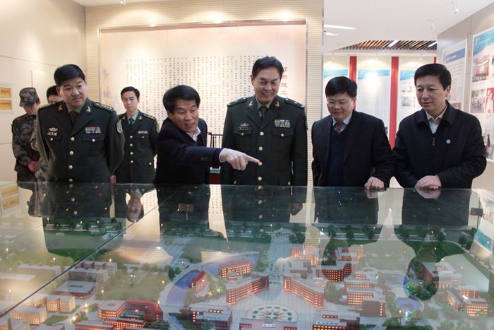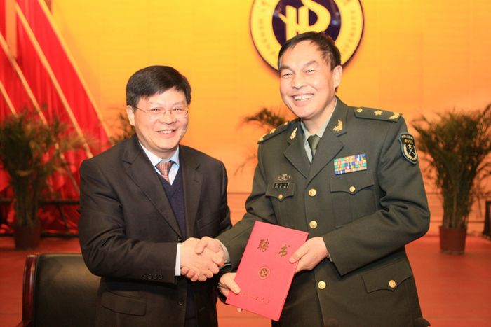 报告会前,学校举行隆重仪式,聘任周和平政委为学校兼职教授,校长邹友峰为周和平政委颁发了聘书。周和平政委一行还在校领导王少安、邹友峰、周志远的陪同下观看了国防生汇报表演,参观了校史馆,并听取了学校国防生教育和国防人才培养情况的汇报。