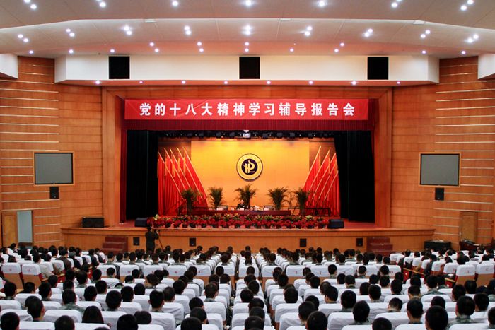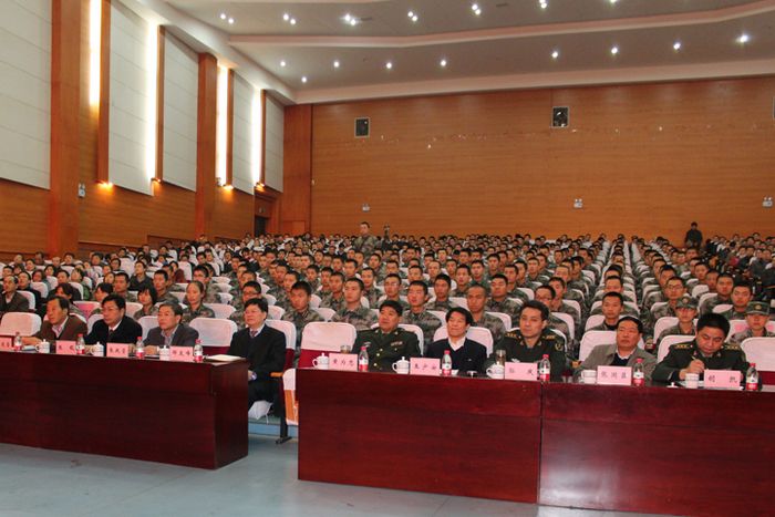 12月4日下午,中共河南省委常委、省军区政委、党的十八大代表周和平少将在省军区政治部副主任黄为忠大校、济南军区驻校选培办主任郭庆上校、省军区政治部宣传处处长胡凯上校的陪同下,莅校在明德楼音乐厅为师生作党的十八大精神学习辅导报告。报告会由校党委书记王少安主持。校领导邹友峰、张国臣、周志远、张战营、张锟、杨建堂出席报告会。学校全体处级干部、机关科级干部、机关党群部门干部、各学院团委和学工办负责人、专职辅导员、马克思主义学院全体教师、全体国防生共700余人一起聆听了报告。