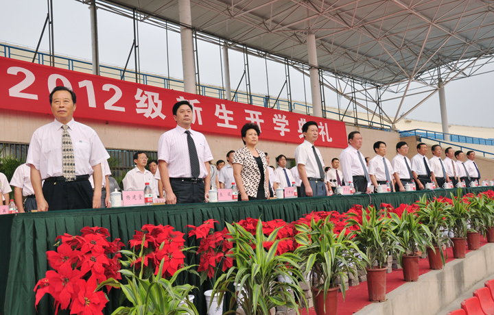9月8日上午,我校2012级新生开学典礼在新体育场隆重举行。校党委书记王少安,校长邹友峰,中国工程院院士张铁岗,校党委副书记兼纪委书记张国臣,校党委副书记周志远,副校长周英、卫中玲、张战营、王裕清、张锟、景国勋,校工会主席杨建堂,校长助理丁安民出席开学典礼,各学院及有关职能部门负责人、全体新生和各学院辅导员参加开学典礼。开学典礼由周志远主持。