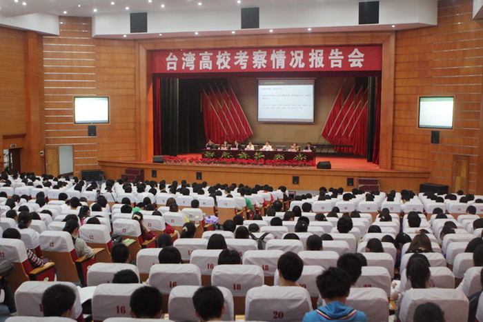 4月23日晚,访问台湾高校情况报告会在明德楼音乐厅举行。校党委书记王少安和访问团全体成员出席报告会,全面介绍了访台期间的主要成果以及见闻和感受。全校600余名师生聆听了报告。