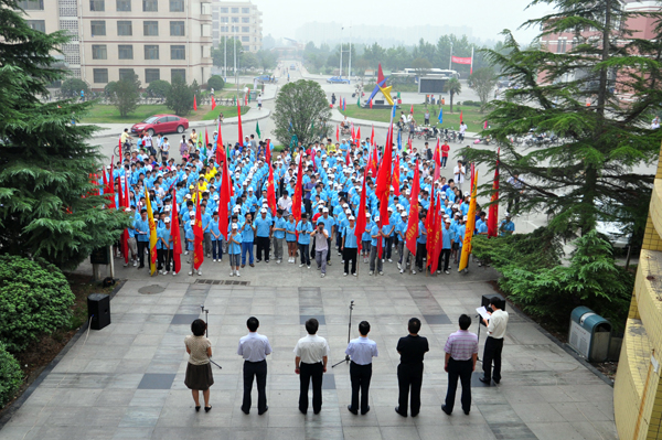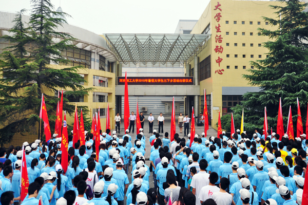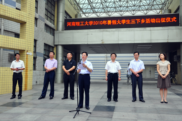 投身实践创造青春业绩,百年理工服务中原崛起。7月17日上午,我校2010年大学生暑期“三下乡”社会实践活动出征仪式在大学生活动中心举行。副校长景国勋出席仪式,党委宣传部、教务处、科技处、学生处、校团委等相关部门负责人与600余名师生参加了仪式。