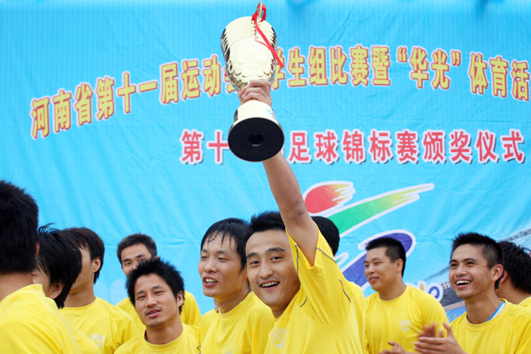 斗志昂扬倾洒青春风采,锣鼓喧天点燃绿茵硝烟。7月15日下午,河南省第十一届运动会大学生组比赛暨“华光”体育活动“澳瑞特”杯第十一届足球锦标赛甲组决赛在我校南校区西足球场揭开帷幕,由我校代表队主场迎战河南财经政法大学队,来自焦作市和省内高校的近千名球迷到现场观战。最终,我校以3∶0的优异战绩勇夺冠军。