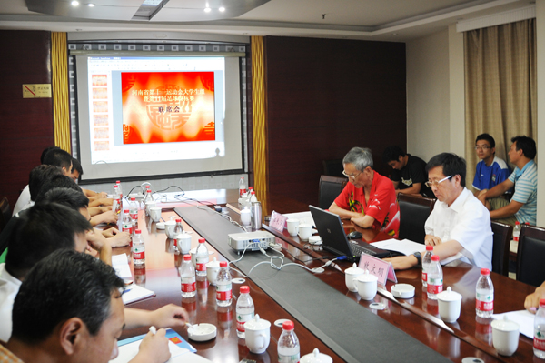 为确保比赛顺利有序进行,畅通代表队之间的交流,7月9日下午,河南省第十一届运动会暨‘澳瑞特杯’大学生组第十一届足球锦标赛裁判员教练员联席会在学苑宾馆会议室举行。河南省学生体育总会顾问郭长润出席会议,来自河南大学、河南师范大学等省内高校代表队的领队、教练员、裁判员参加联席会议。
