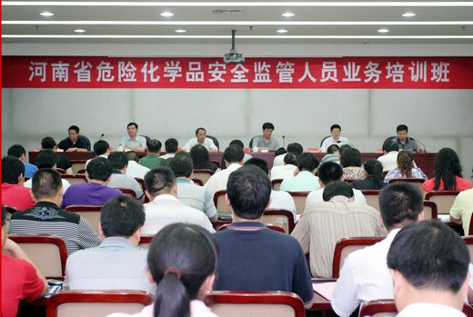 7月13日上午,河南省危险化学品监督管理专题业务培训班在我校安全技术培训中心隆重开班。来自全省各市、县、区安全监管部门的领导和危险化学品监管人员120余人参加本次培训。河南省安全生产监督管理局人事培训处处长何景利,监管三处处长徐晓航、副处长钱永亮,我校副校长景国勋和安全技术培训中心负责人李德海、黄定国出席了开班典礼。开班典礼由安全技术培训中心主任李德海主持。