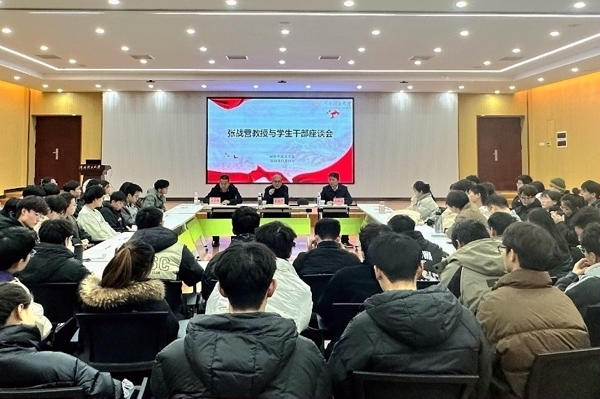 座谈伊始,张战营结合自己的工作经验和人生阅历,以平实真诚的言语,逐一解答同学们的提问,并提出具有建设性的意见建议。张战营希望,青年学生要增强敬畏之心、是非之心、恻隐之心,严格要求自己、团结带领同学共同进步,努力成为栋梁之才。与会同学围绕专业方向、考研方向及就业方向的选择、提升班级凝聚力、如何安排学习与课外活动等方面积极提出个人疑问。整个座谈过程气氛活跃、融洽,获得同学们的一致好评。