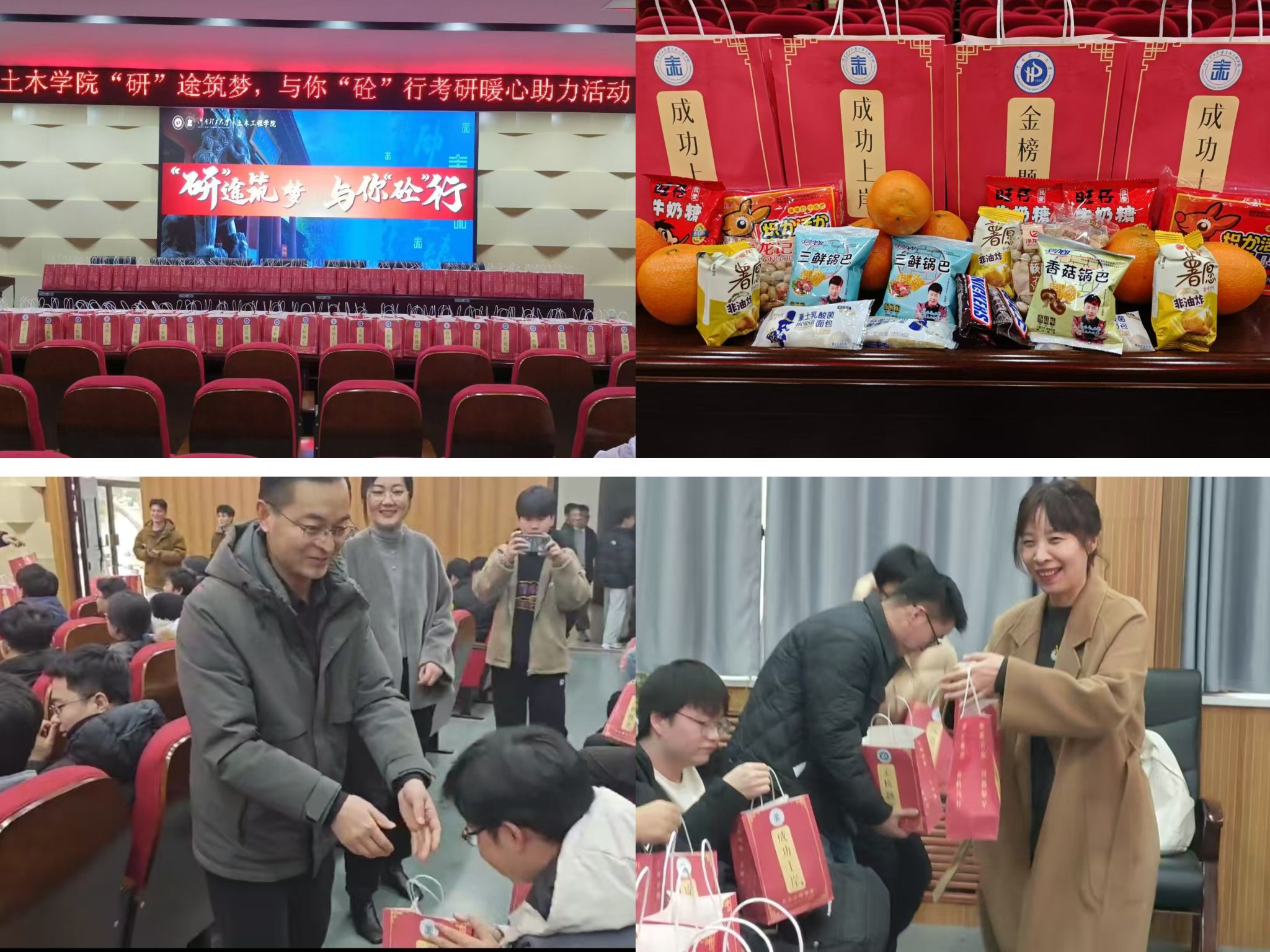在2025年全国硕士研究生招生考试即将来临之际,为缓解考研压力,增强考研信心,12月11日下午,土木学院在学院101报告厅举行“研”途筑梦,与你“砼”行考研暖心助力活动,为向即将奔赴考场的学子们送上最真挚的祝福和鼓励。