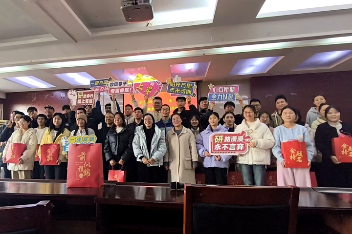 执笔为剑,披荆斩棘;以梦为马,不负韶华。为增强考研学子学习动力与自信心,缓解考研压力,12月4日下午,在2025年全国硕士研究生考试进入倒计时之际,安全学院在学院101会议室开展“逐梦前行,一‘研’为定”考研助力活动,为考研学子发放专属“考研加油包”。该院相关领导、全体辅导员,以及2021级全体考研学子200余人共同参与了此次活动。