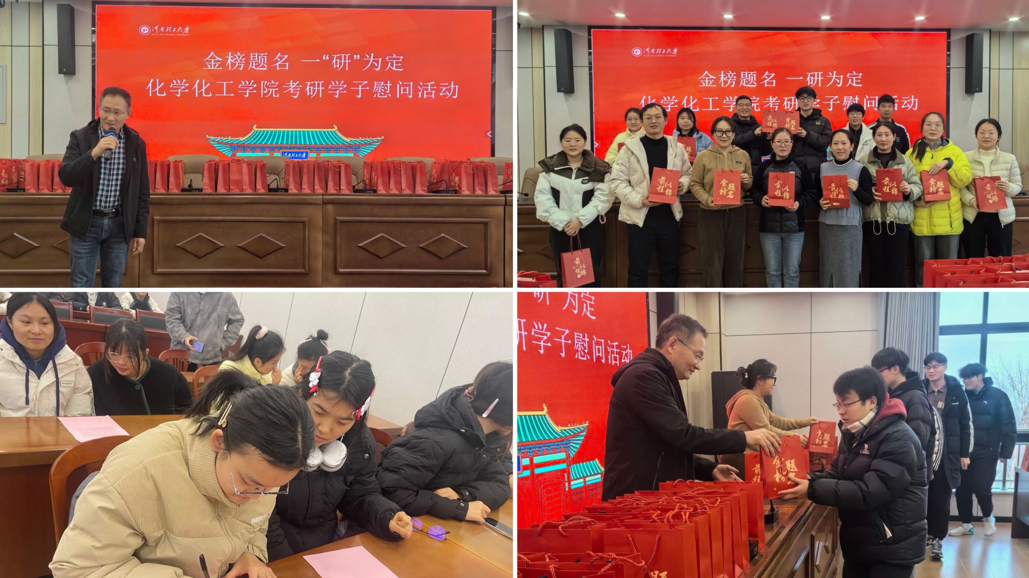 为了鼓舞考生士气,缓解考前压力,坚定考研信心。12月17日下午,化工学院在综合实验楼507开展考研慰问系列活动,化工学院相关领导、全体专兼职辅导员,以及全体21级考研学生参加本次活动。