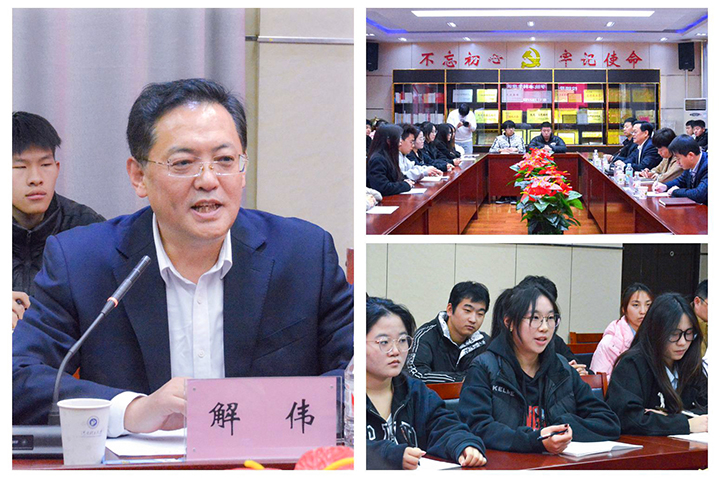 座谈会上,解伟就学生代表提出的有关“就业创业、升学深造、学生教育与管理”等方面的问题给予详实讲解。其中,针对“大城市、小城市就业选择”“边远地区发展前景”“专业限制就业”等问题,根据自己的人生阅历与实际经验为学生们答疑解惑。他指出,同学们在大学期间不应被专业方向所限制,要积极培养自己各方面的能力,如写作能力、交际能力等;要培育良好的自我学习能力与适应新环境的能力,实现多元化发展,增加未来就业选择;要有充分的自信去面对未来的机遇和挑战。解伟亲切幽默的言语拉近了与学生们的距离,座谈会气氛欢快融洽,学生发言积极踊跃,座谈会取得预期效果。
