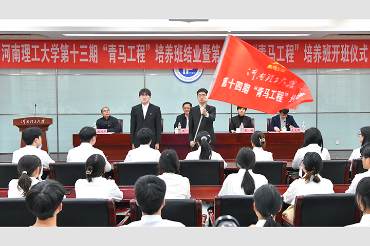 仪式在雄壮的国歌声中拉开序幕。主席台就坐领导为第十三期“青马工程”培养班结业学员和优秀学员代表颁发证书,老学员向新学员授班旗,第十三期“青马工程”培养班优秀学员代表和第十四期“青马工程”培养班新学员代表分别作精彩发言。解伟代表学校党委向各位顺利结业和即将接受培训的学员表示热烈的祝贺,向一直支持青年马克思主义者培养工作的各部门、各学院、各位老师表示衷心的感谢,并对“青马工程”学员提出三点希望。要以学博闻铸魂,筑牢信仰之基。将马克思主义的深刻内涵内化于心,形成正确的世界观、人生观和价值观,以正确的理想信念指导自己保持人生道路的正确方向,做马克思主义的笃定信仰者,做对党忠诚、坚实可靠的社会主义建设者和接班人。要以学润心增信,补足精神之钙。要始终保持对知识的渴望和对学习的热情,加强理论学习,锤炼道德品质,学习如何坚守共产主义理想,不断增强对中国特色社会主义的道路自信、理论自信、制度自信、文化自信。要以学明德任责,把稳思想之舵。要始终明德任责,把稳思想之舵,心怀“国之大者”,将“小我”融入“大我”,用实际行动证明新时代的中国青年是堪当大任的一代。