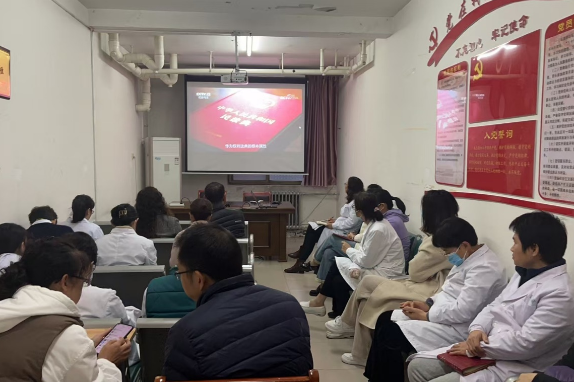根据学校《关于开展2024年法治宣传教育月活动的通知》文件精神及机关党委相关要求,为深入学习贯彻习近平法治思想,11月14日下午,在210会议室,校医院党支部组织党员和教职工集中观看了法治教育片《民法典进行时》第二集。