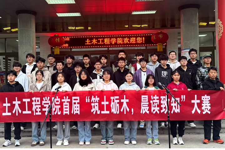 本网讯(通讯员 姜冰 张俪竞)为进一步引导学生们养成良好的阅读习惯,提升语言表达能力和文学素养,营造浓厚的校园文化氛围。土木学院于11月12日——15日早晨,在该院楼前广场举行首届 “筑土砺木 晨读致知”大赛。比赛评委由该院相关领导和负责人担任,该院2024级全体学生参加了比赛。