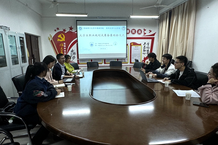 本网讯(通讯员 任幸幸 陈梦玉)为进一步增强大学生职业规划意识,提升大学生职业规划大赛备赛工作质量,11月11日晚,我校外国语学院与焦作大学人文学院在文综楼318会议室开展大学生职业规划大赛备赛经验交流。
