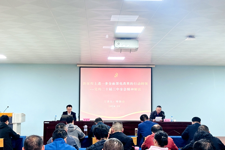 申海涛首先对党的二十届三中全会召开的盛况进行了简单介绍,随后他围绕为什么要进一步全面深化改革、进一步全面深化改革的目标方向、进一步全面深化改革的重大举措等三个方面对党的二十届三中全会精神进行了深度解读。他指出,党的二十届三中全会是在以中国式现代化全面推进强国建设、民族复兴伟业的关键时期召开的一次十分重要会议,彰显了以习近平同志为核心的党中央将改革开放进行到底的坚强决心和强烈使命担当。宣讲报告主题鲜明、内容丰富,对于全面领会党的二十届三中全会精神具有很强的指导意义。