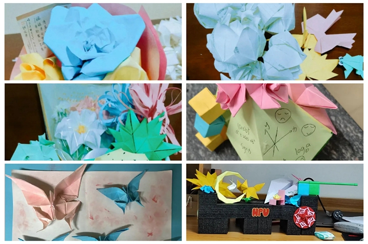 本网讯(通讯员 王白鸽)为引导青年大学生树立正确的劳动观,参与创造性劳动,以劳创新、以劳树德、以劳育美,10月8日—12日,数信学院组织各年级学生将劳动教育与专业学习相结合,通过完成一系列富有创意的折纸作品,实现了数学专业知识与劳动实践教育的深度融合,提升学生们的专业素养,激发大家丰富的想象力和创造力。