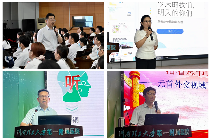 于拥军以“梦想起航,共创未来”为题,从文化自信、发展战略、新区医院、新员工寄语四个方面出发,带领新员工回望医院六十年风雨路,从建院初期只有单薄的两栋小楼发展到现如今规模宏大实力雄厚的国家综合性三级甲等医院,所有的一切都来之不易,这是一代又一代一附院人历经坎坷,无私奉献,奋勇拼搏所成就的。于拥军进一步介绍了医院现阶段的发展方向及未来目标,同时告诫大家对职业生涯要有清晰的规划和明确的目标,并对各位新员工寄予厚望。