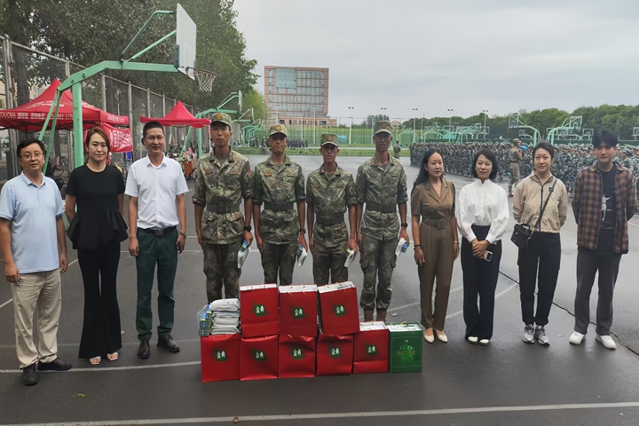 在中秋佳节来临之际,为表达对军训期间2024级新生的深切关怀,提振新生士气,9月14日下午,安全学院同财经学院共同慰问二营八连全体军训教官及学生,该院相关领导,以及2024级新生辅导员前往训练场地,看望慰问教官及学生并为他们送去慰问物资。