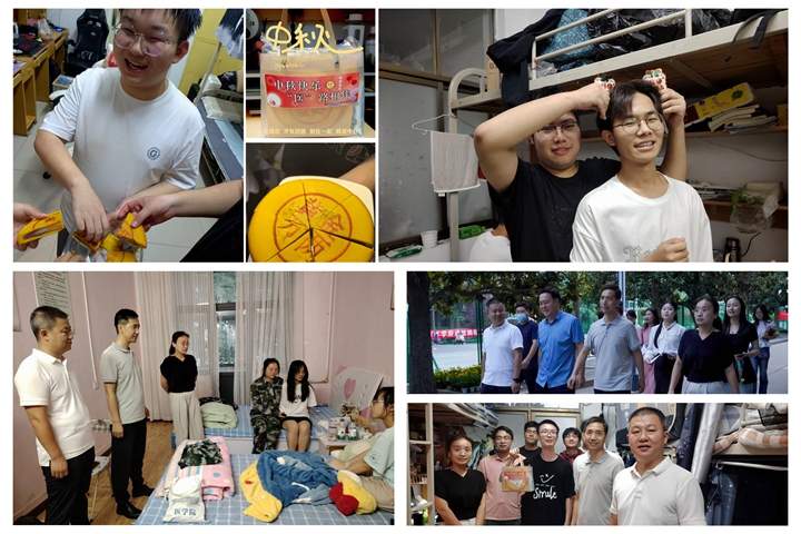 该院领导一行携带精心准备的中秋礼盒,逐一走访学生宿舍,亲手将慰问礼品送到同学们手中,希望这份小小的礼物能够在这个团圆的节日里为同学们带来学院的温暖。该院领导真诚祝福同学们节日快乐,亲切询问他们的学习和生活情况,并鼓励他们珍惜在校时光,努力学习,注意保持良好的身心状态。同学们收到礼物后,品尝着甜甜的月饼,整个宿舍洋溢着节日的喜悦和温馨的氛围,虽然中秋节不能回家与家人团聚,但同学们感受到了学院带来的关心和关怀,并纷纷表示感谢学院带来的温暖和祝福,浓浓的节日氛围让他们虽处异乡却无异客之感。