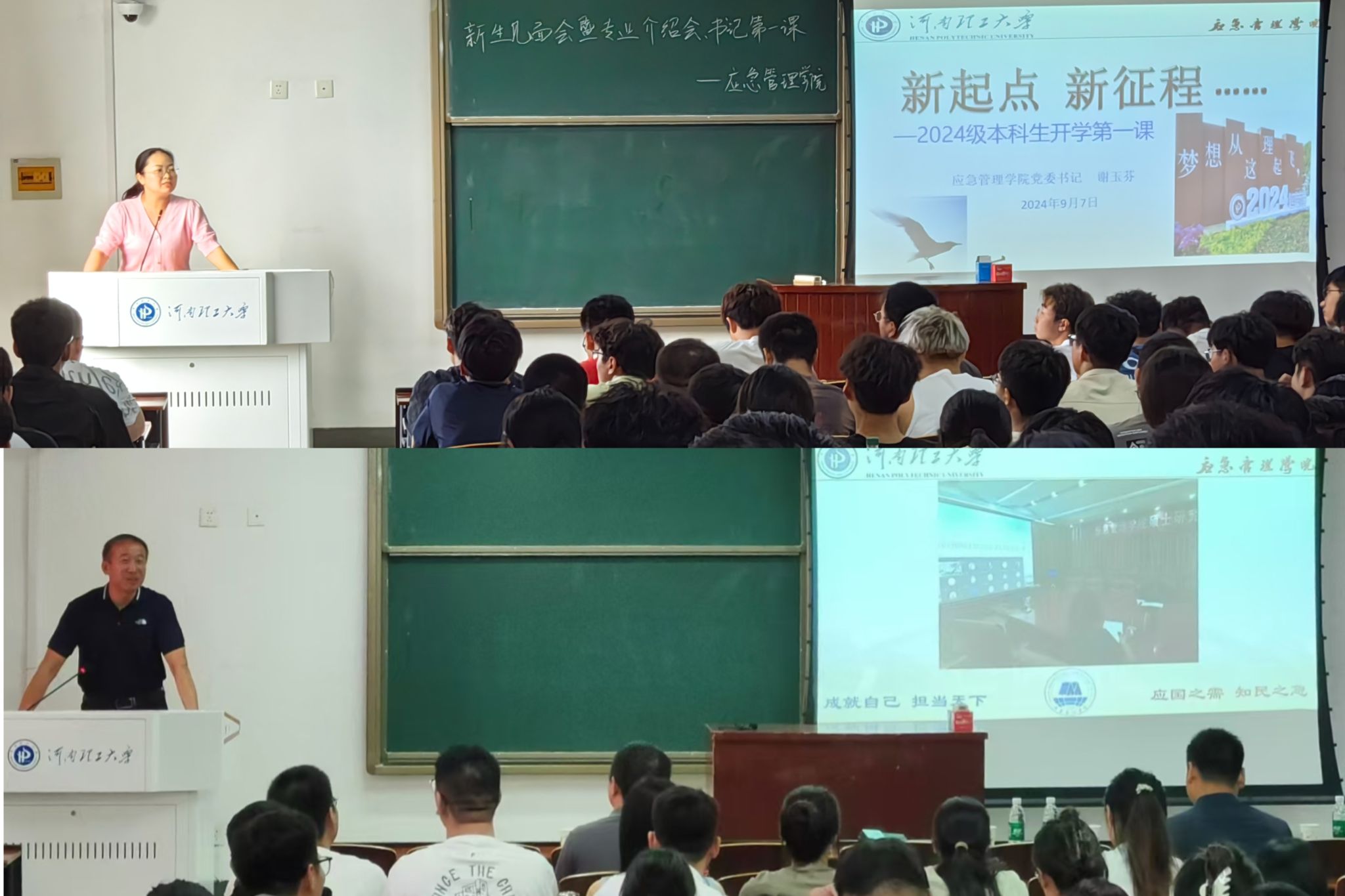 本网讯(通讯员 杨笑冰)启智扬帆新学海,筑梦前行踏征程。为贯彻落实党的教育方针和立德树人根本任务,帮助青年学子系好“人生第一粒扣子”,努力成长为适应国家未来发展需求的时代新人,9月6日至7日,应急管理学院党委书记谢玉芬、执行院长张小兵分别于文综楼教室为2024级本科和研究生新生讲授“开学第一课”。