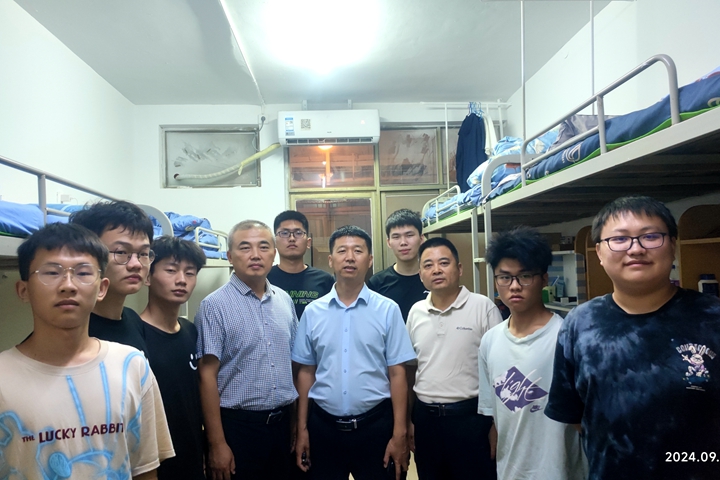 9月5日晚,为深入了解新生入学情况,增进师生间的沟通与交流,能源学院党委书记李怀珍、党委副书记邵水军、学院副院长杨玉中、李东印及各年级辅导员深入2024级新生宿舍,为新生送去关心与问候。