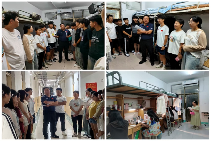 9月6日晚,体育学院学工队伍与班主任们深入新生宿舍进行走访,详细了解学生的报到情况及宿舍生活状况。此次走访覆盖了兰五、竹四以及梅一等新生宿舍楼。